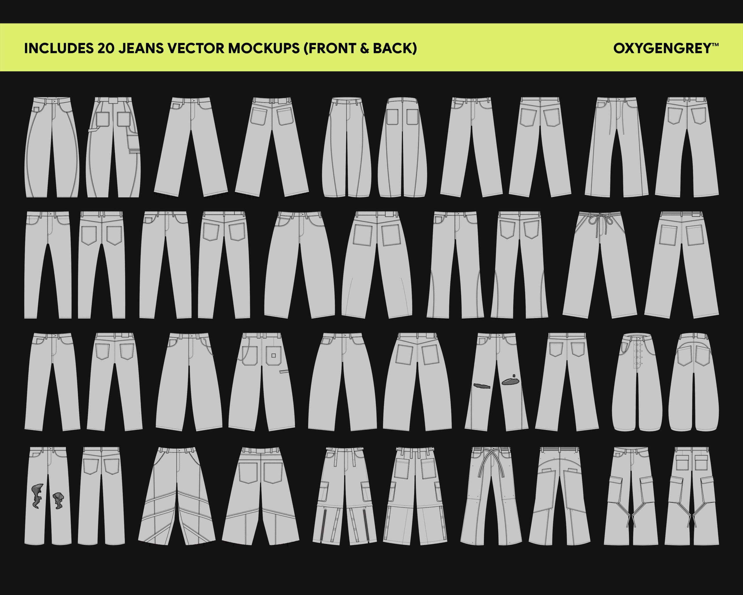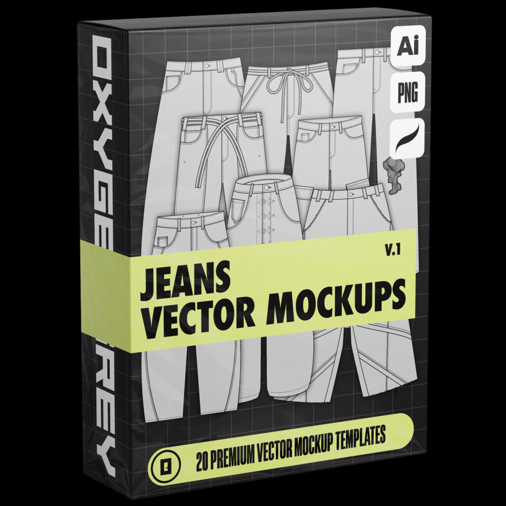 Jeans Vector Mockups (Vol.1) gives you 20 core templates built for manufacturing custom Jeans — covering a range of fits and styles for everyday and streetwear designs.